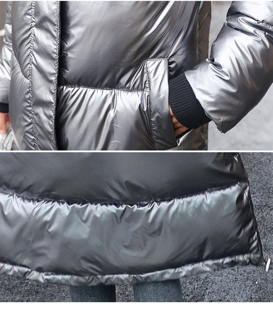 TJ Women's Thickened Long Pearl Shiny Cotton Coat